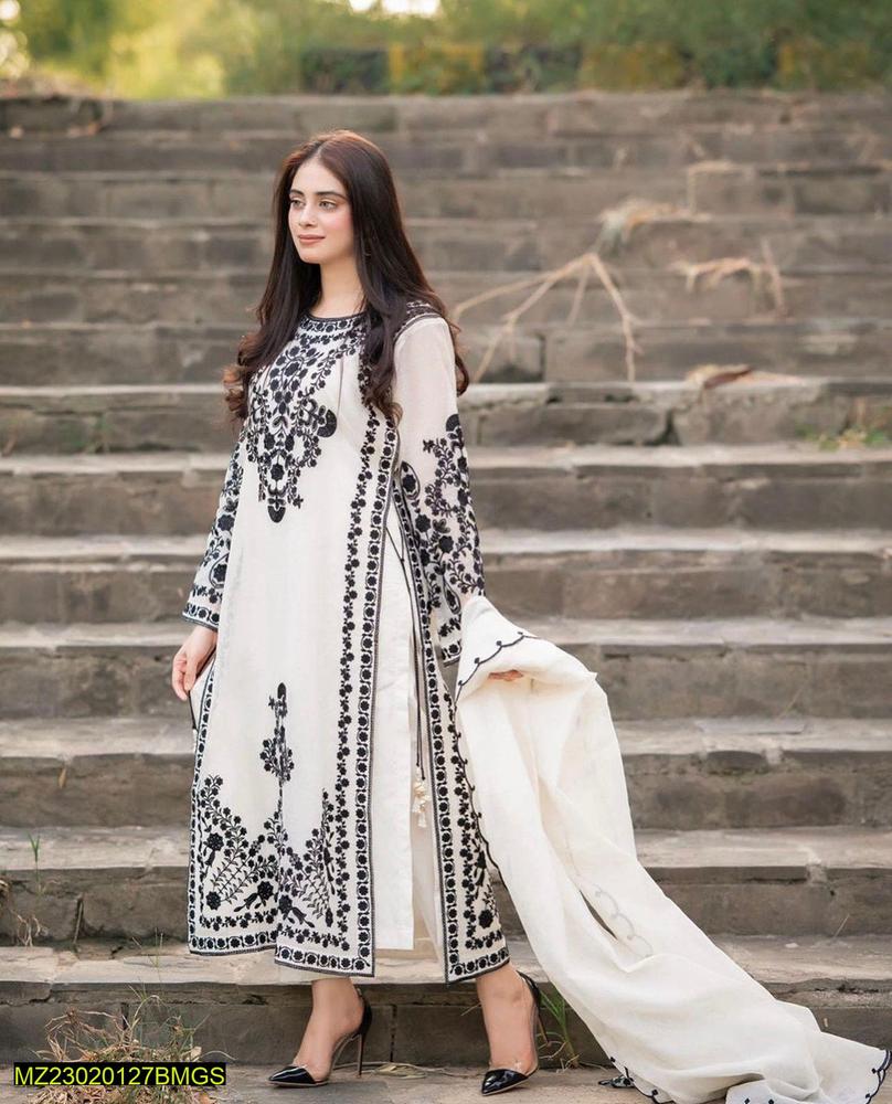 3 Pcs Women’s Stitched Organza Embroidered Suit
